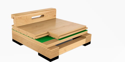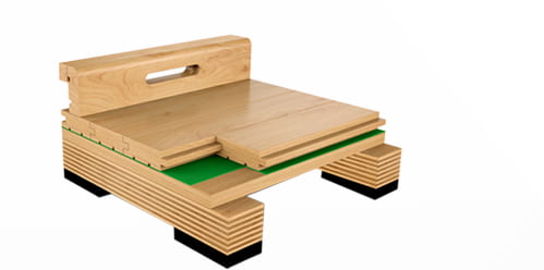 雙層龍骨結(jié)構(gòu)——(專業(yè)比賽之選)符合德國DIN標(biāo)準(zhǔn),彈性、吸震性良好,適用于大型比賽場館